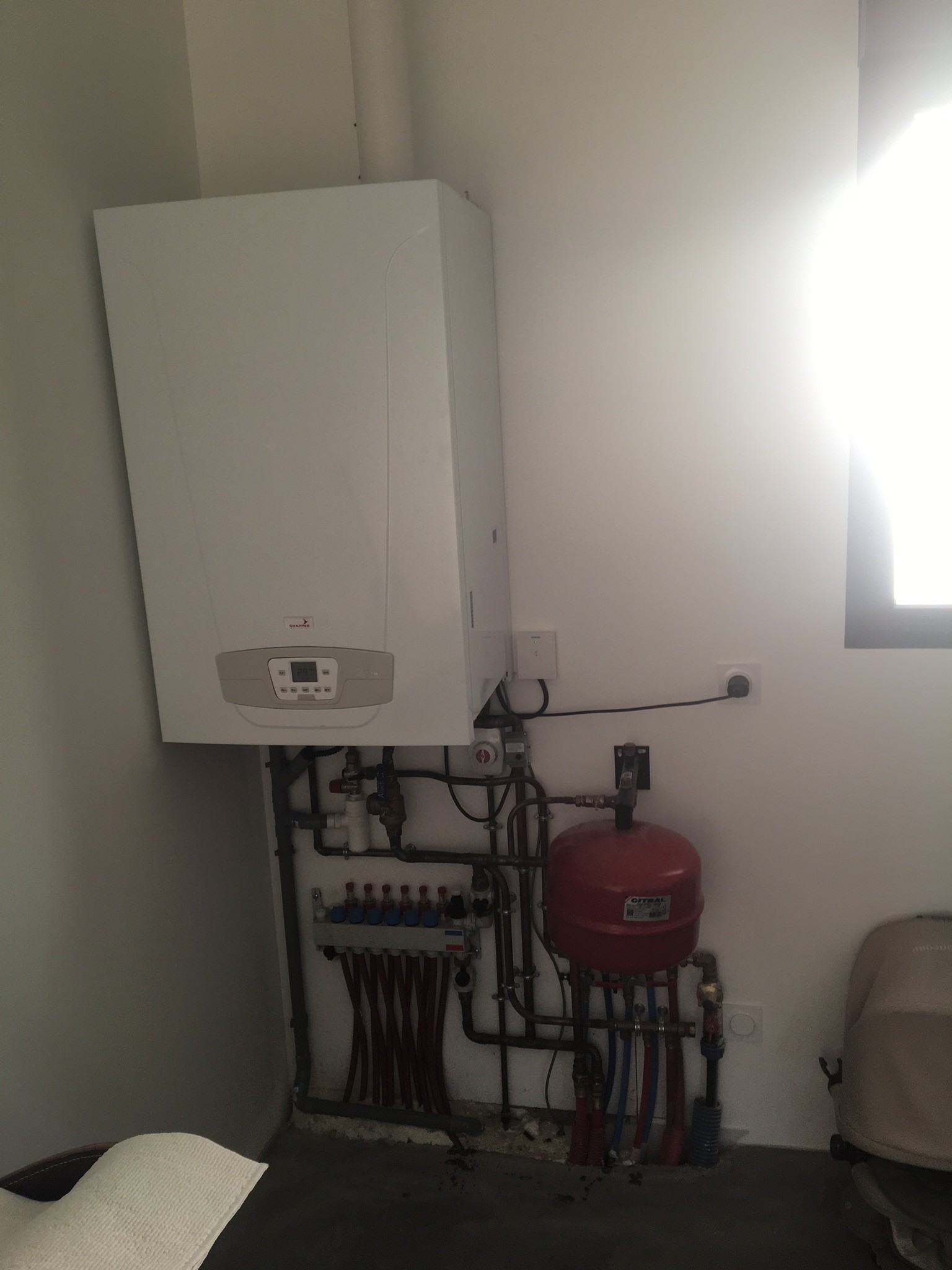 Installation d’une chaudière à condensation CHAPPEE pour un circuit de plancher chauffant d’une surface de 200m2.